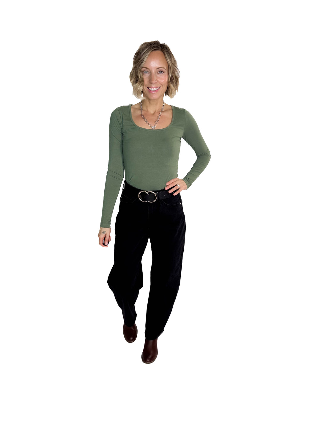 Indie Ribbed Long Sleeve- SMOKEY OLIVE