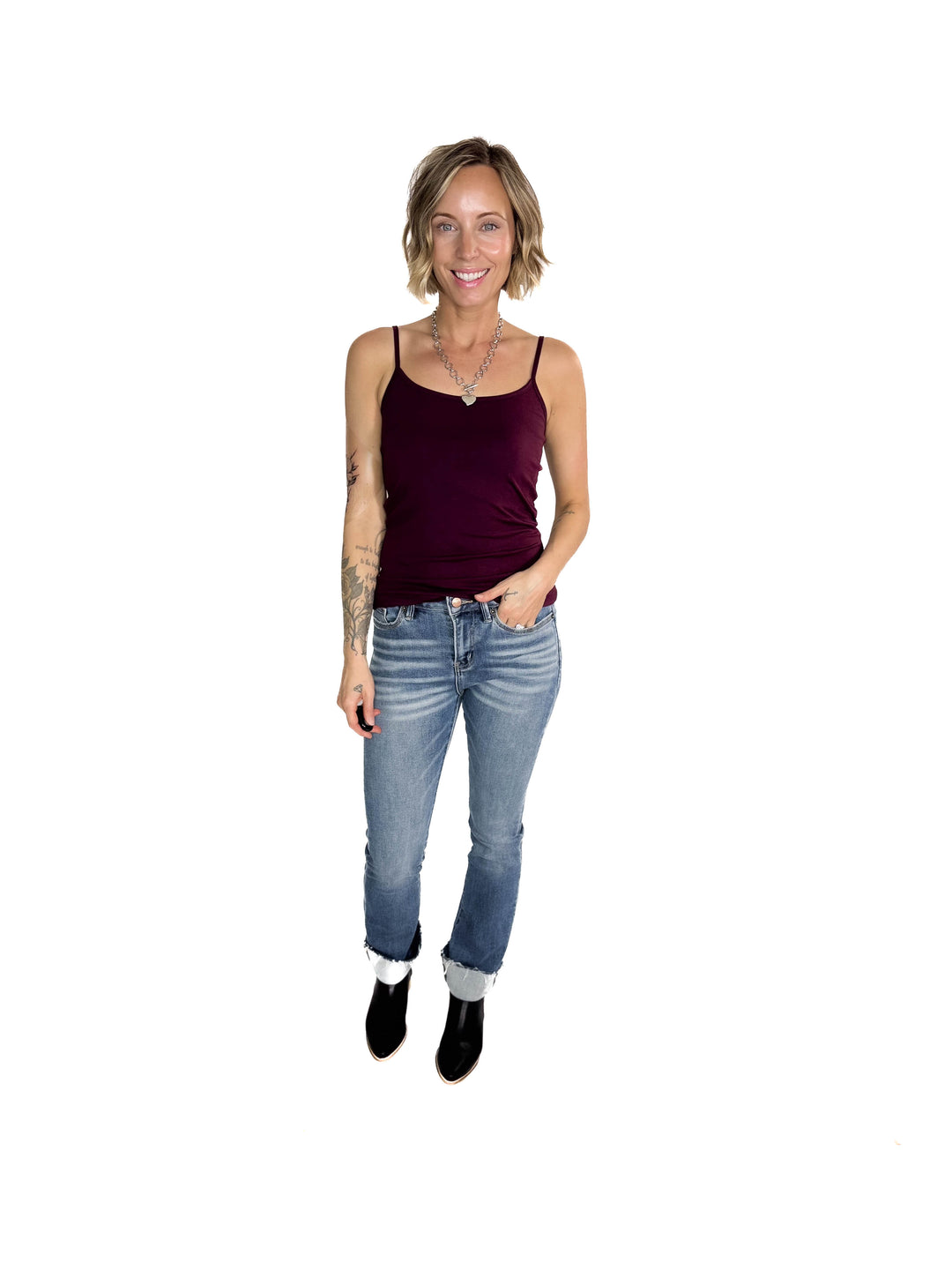 Alder Stretch Cotton V-Neck Tee- PLUM
