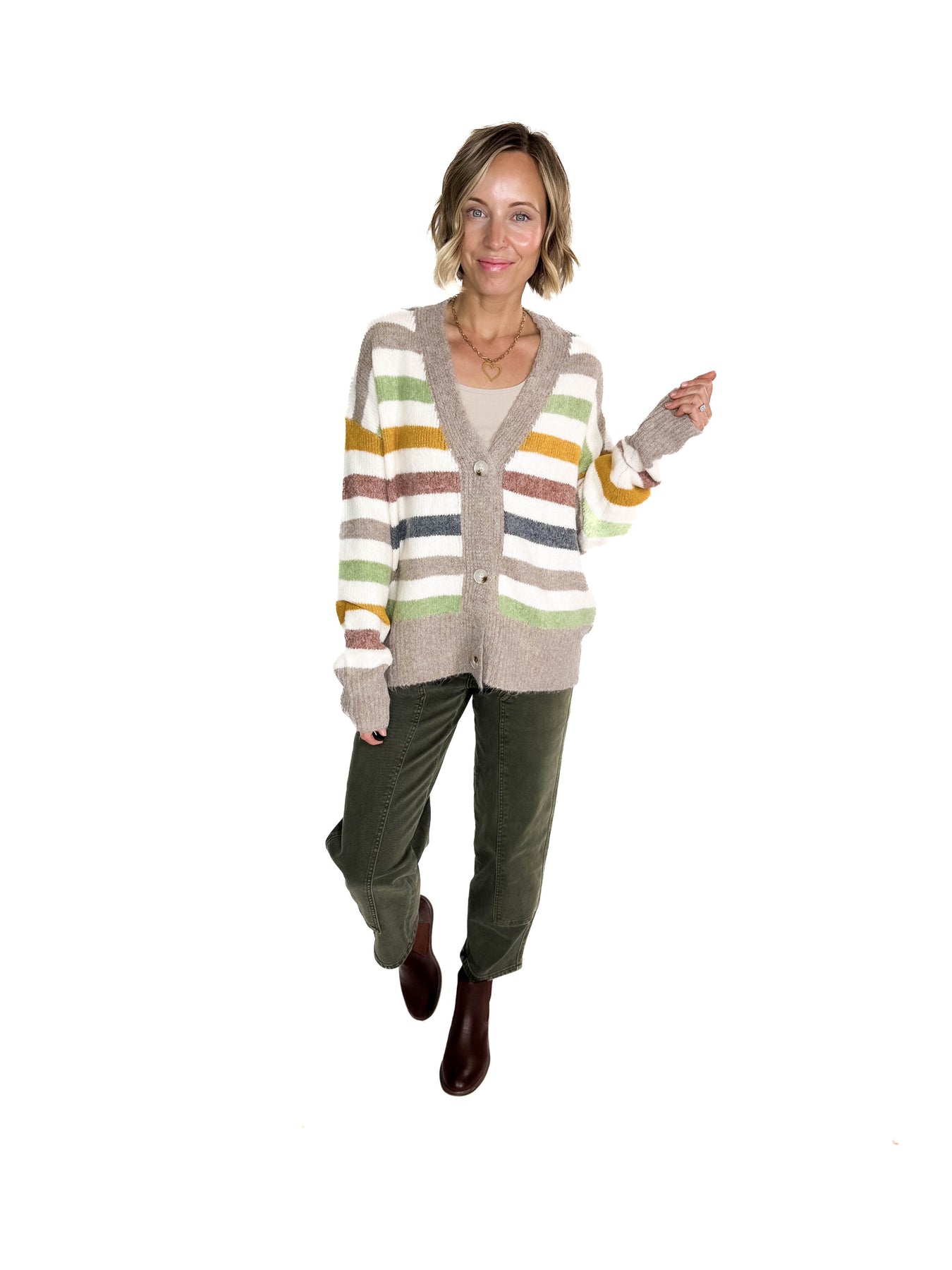 Additional: Striped Knit, Functional Buttons, Soft Texture