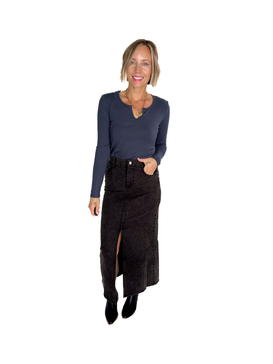 Matilda Elastic Waist Twill Maxi Skirt- BLACK-FINAL SALE
