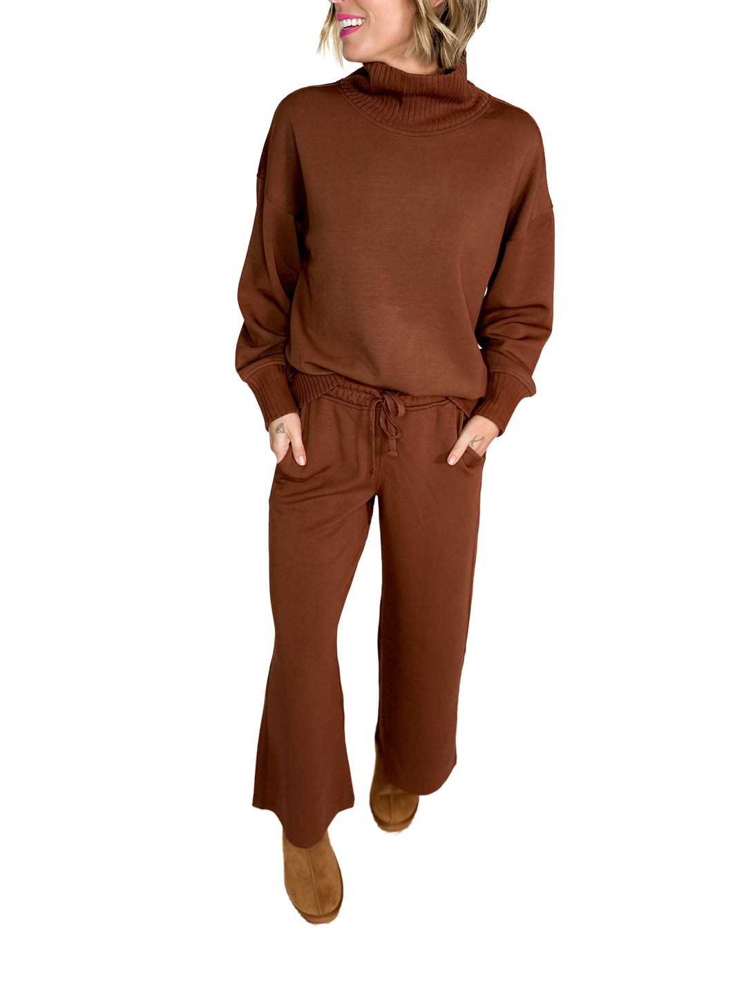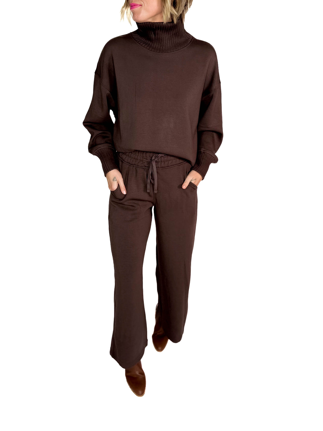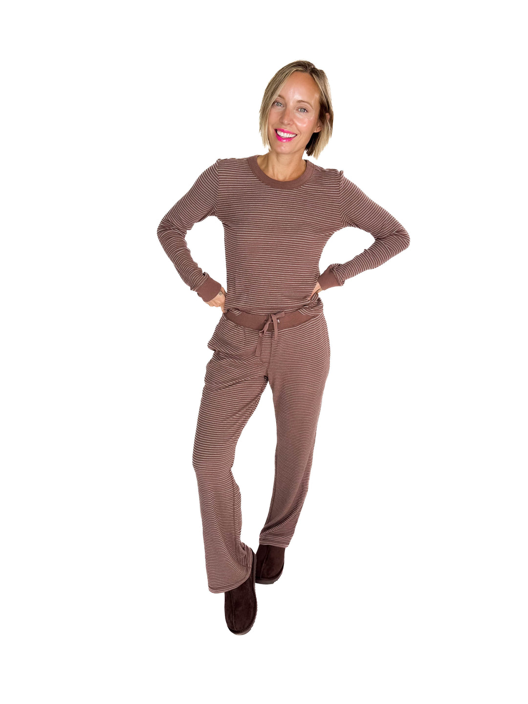 Layla Waffle Lounge Pant- BROWN-FINAL SALE