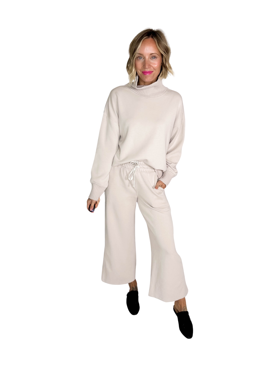 Brea Cropped Wide Leg Pant- MOCHA CREAM