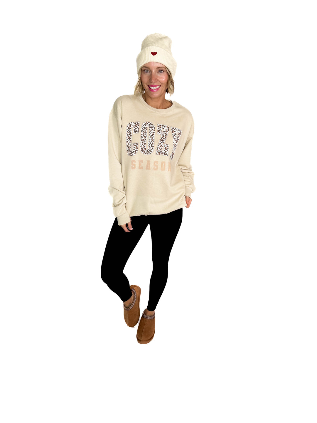 Cozy Season Leopard Graphic Crewneck- OATMEAL