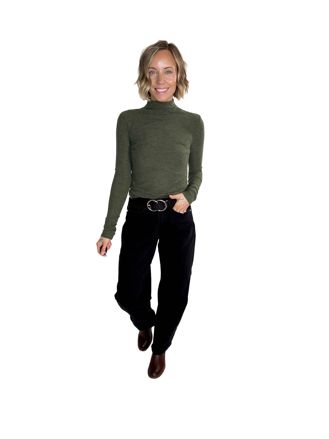 Snow Bound Mock Neck Glitter Long Sleeve- SAPPHIRE GREEN