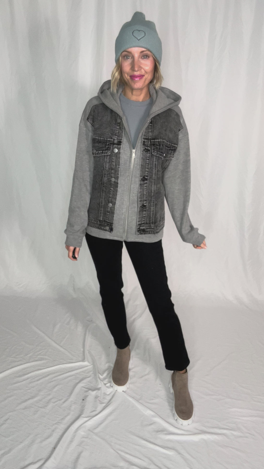 - Denim with a twist — soft hood and relaxed fit for an effortless layered look