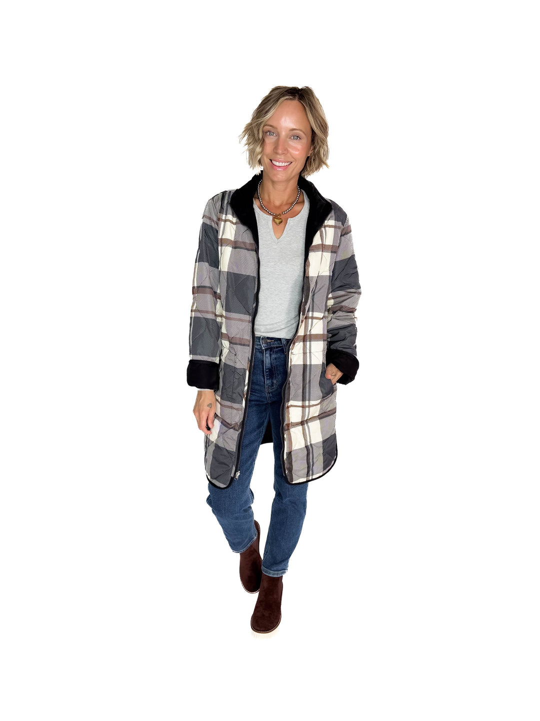 THREAD & SUPPLY Nixie Quilted Reversible Jacket- BLACK/PLAID-FINAL SALE