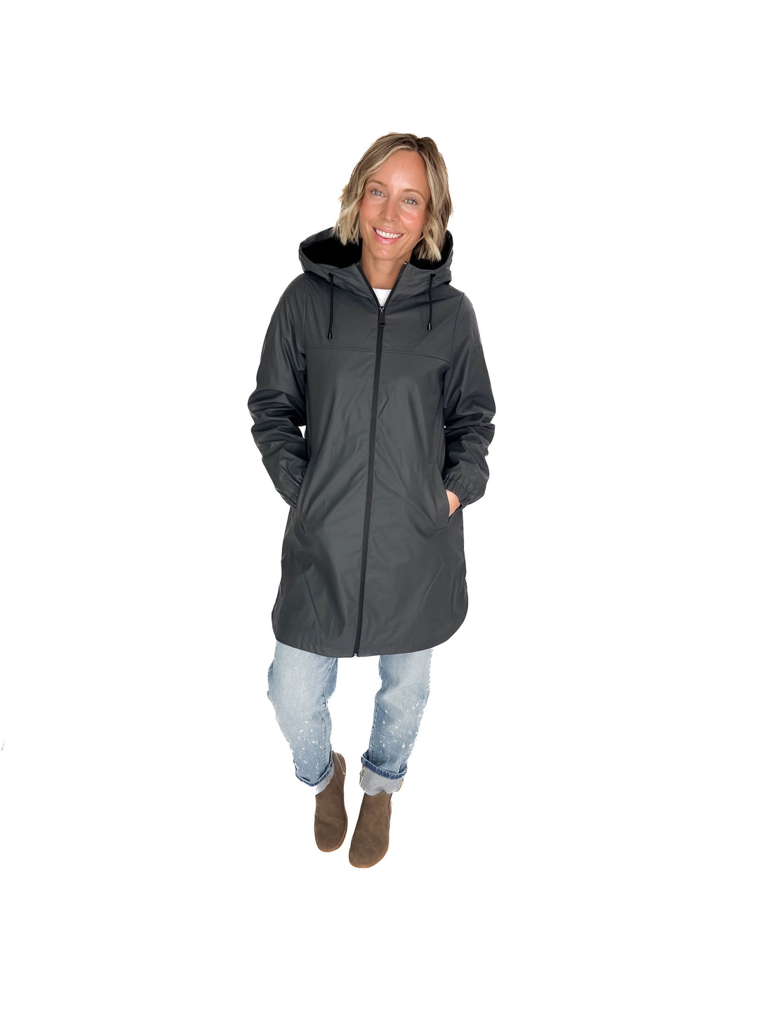 VERO MODA Asta Teddy Hooded Rain Coat- ASPHALT GREY - final sale