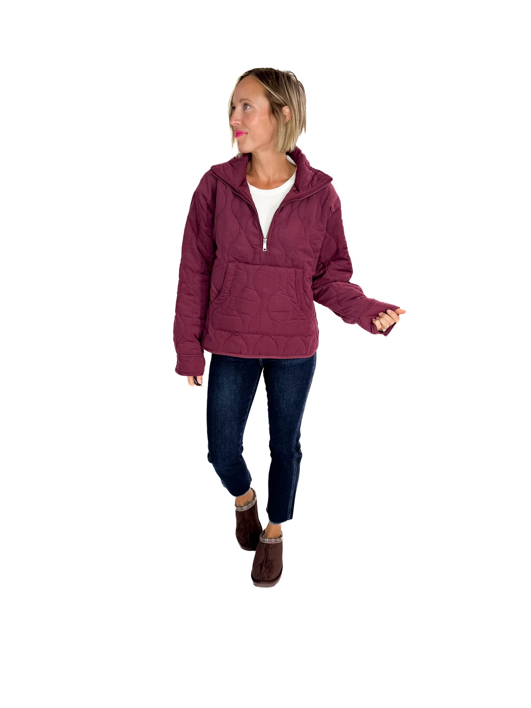 Elmwood Quilted 1/4 Zip Jacket- DARK CHERRY - final sale