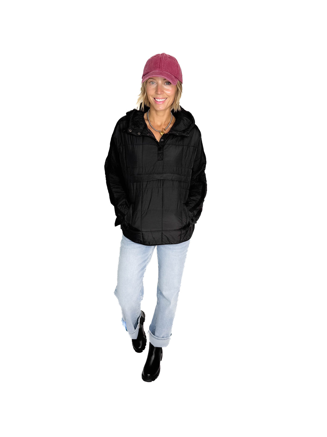 Ember Quilted Puffer Hooded Pullover- BLACK