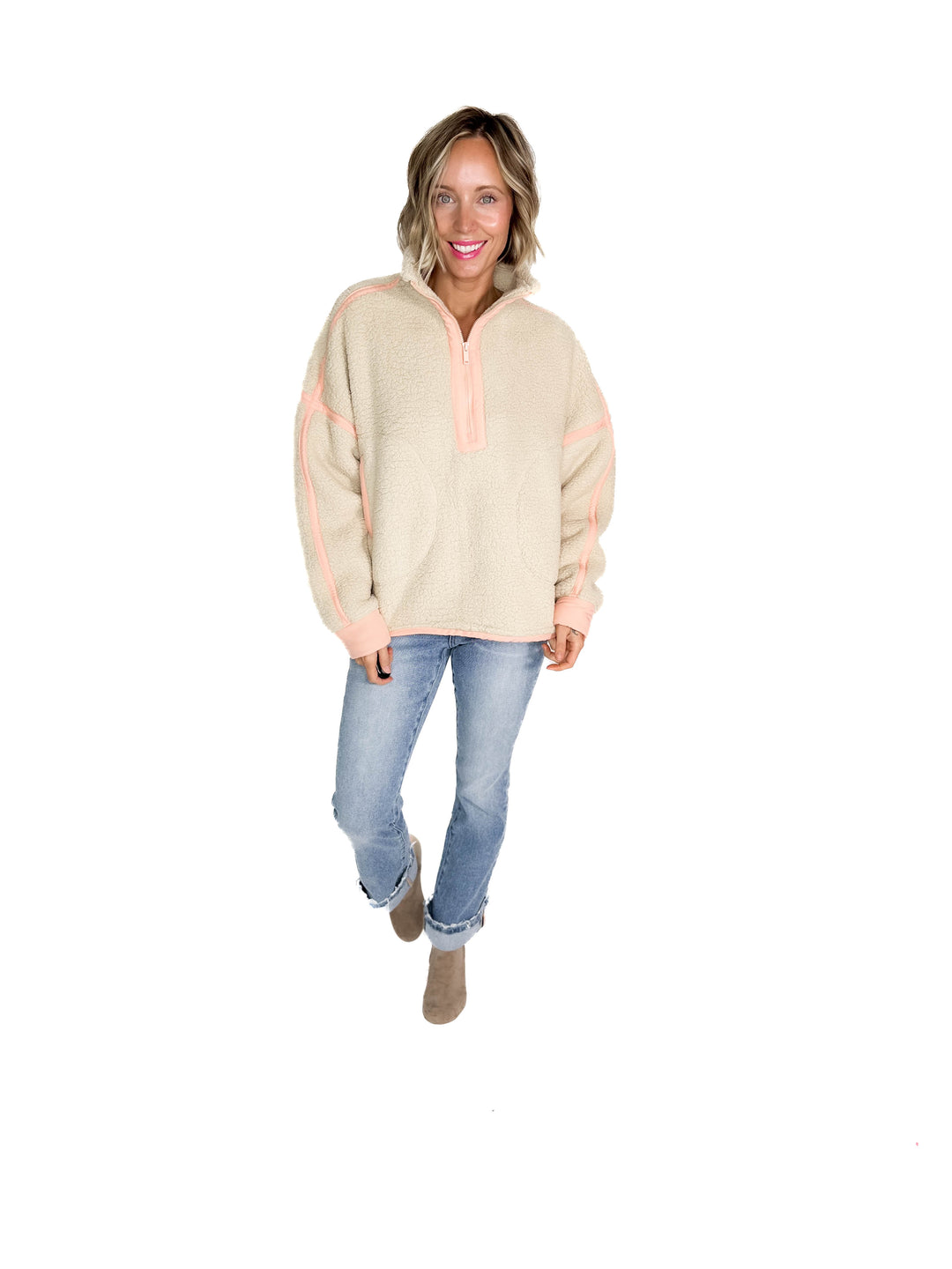 Tundra Mock Neck 1/2 Zip Sherpa Jacket- TAUPE /PEACH CREAM