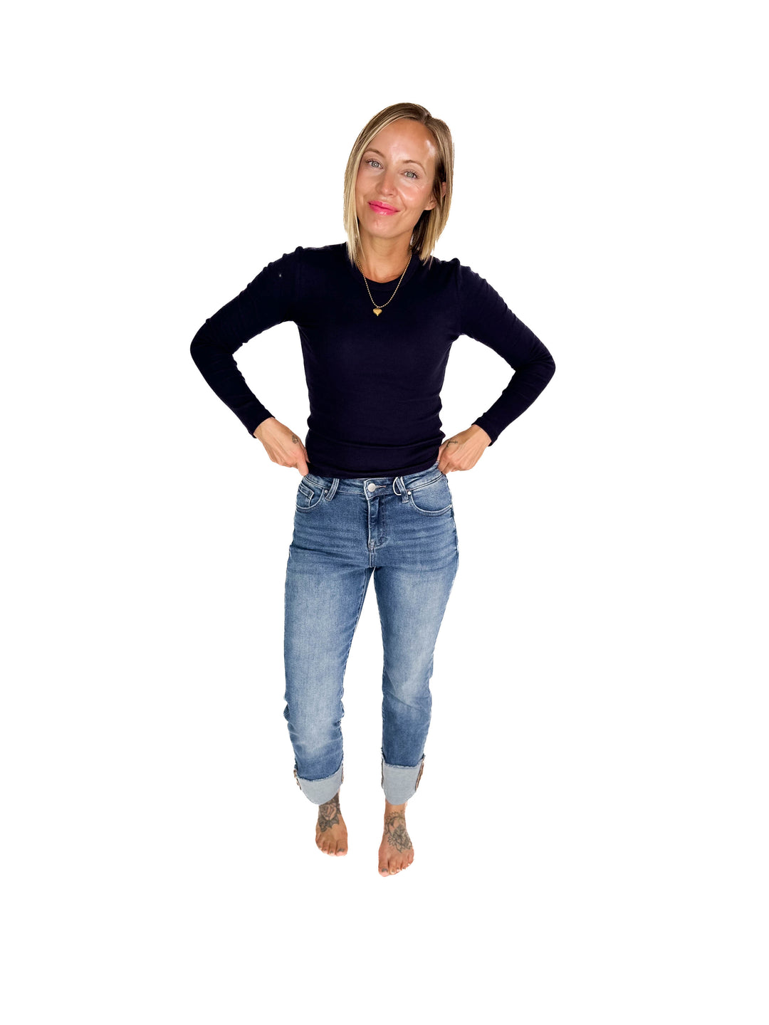 RISEN Twilight High Rise Straight Cuffed Jean- DARK-FINAL SALE