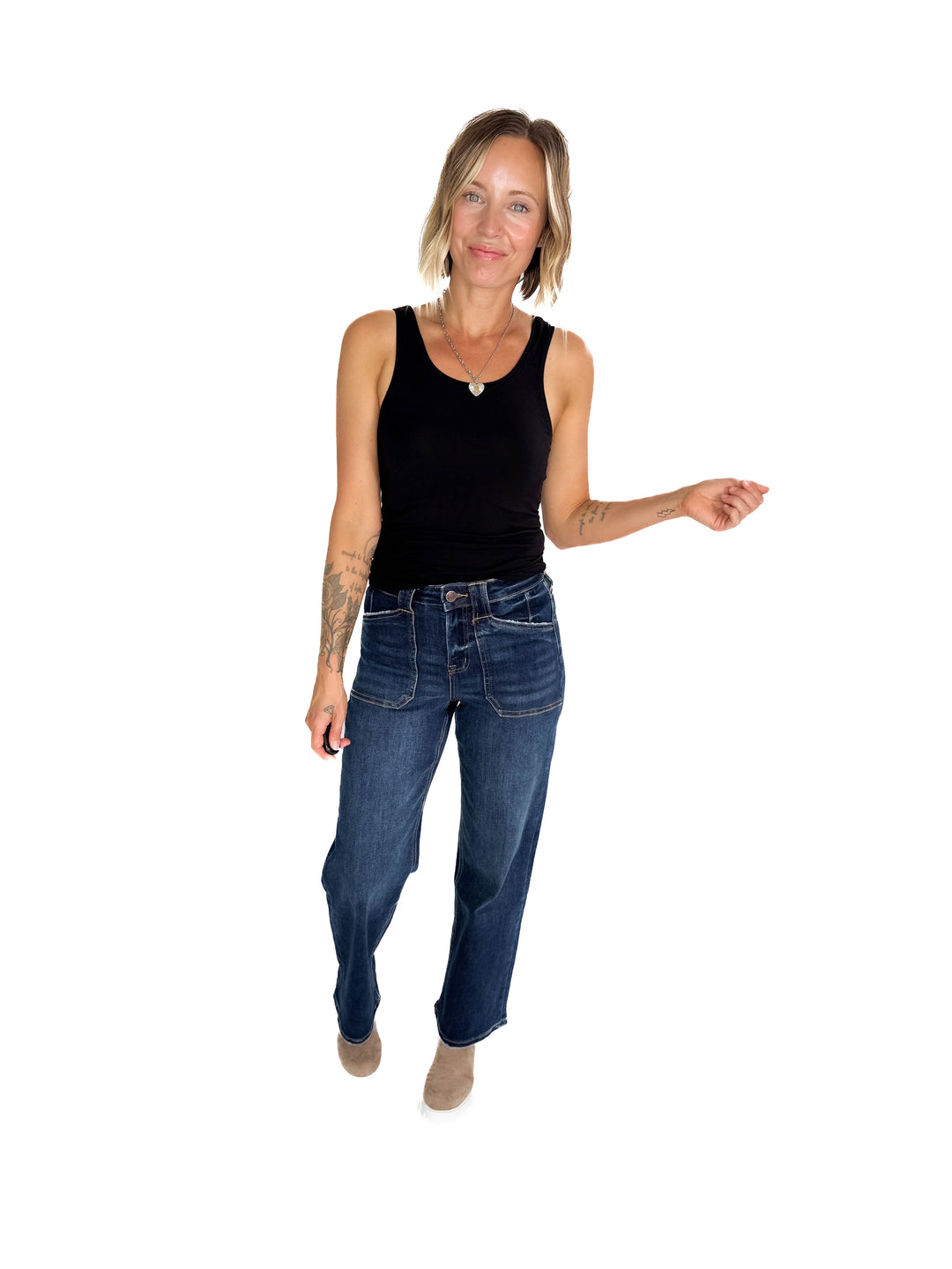 MICA Bonnie High Rise Patch Pocket Jean- DARK-FINAL SALE