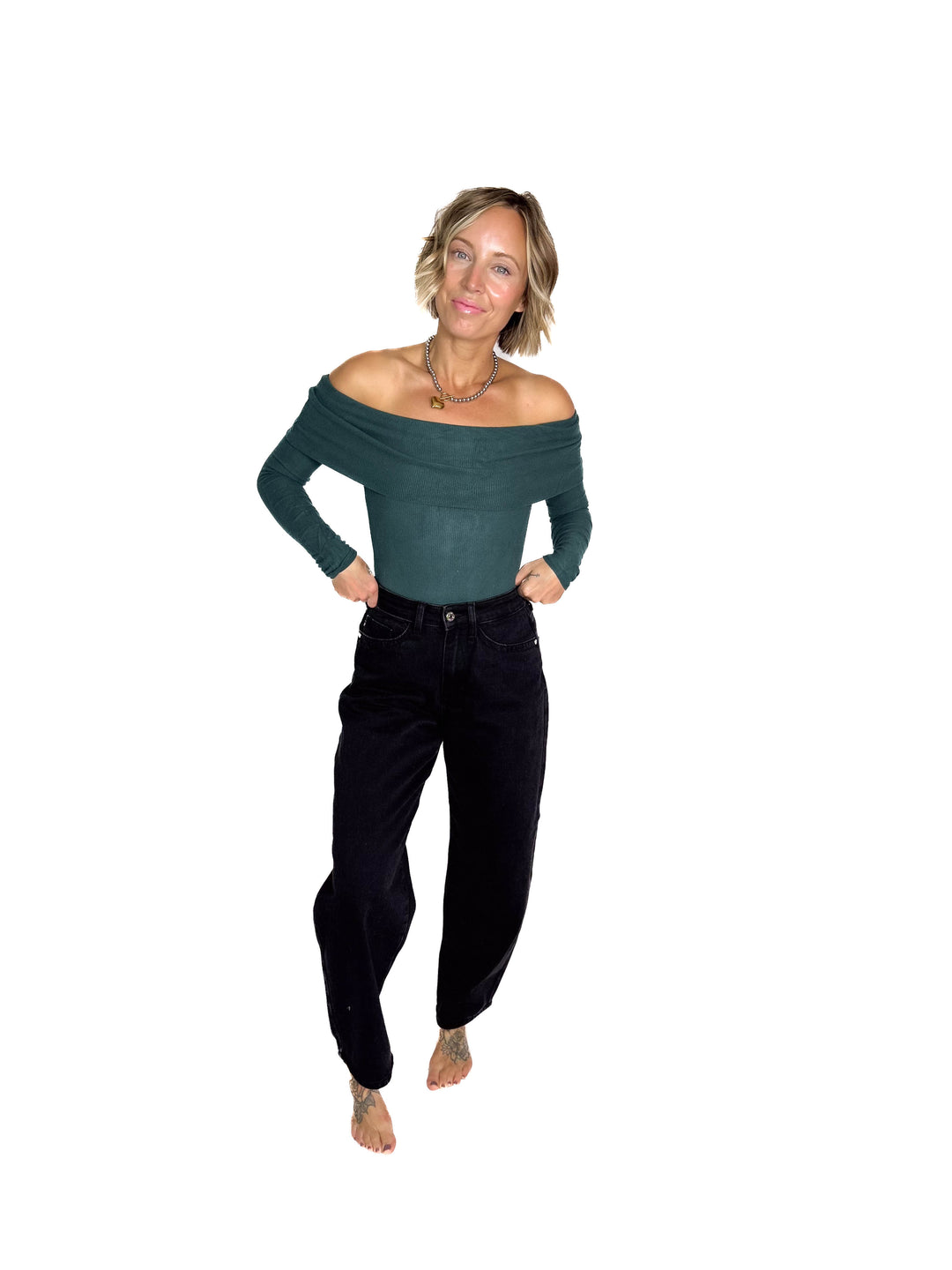 FLYING MONKEY Cypress Super High Rise Barrel Jeans- DEEP FOREST-FINAL SALE *24*