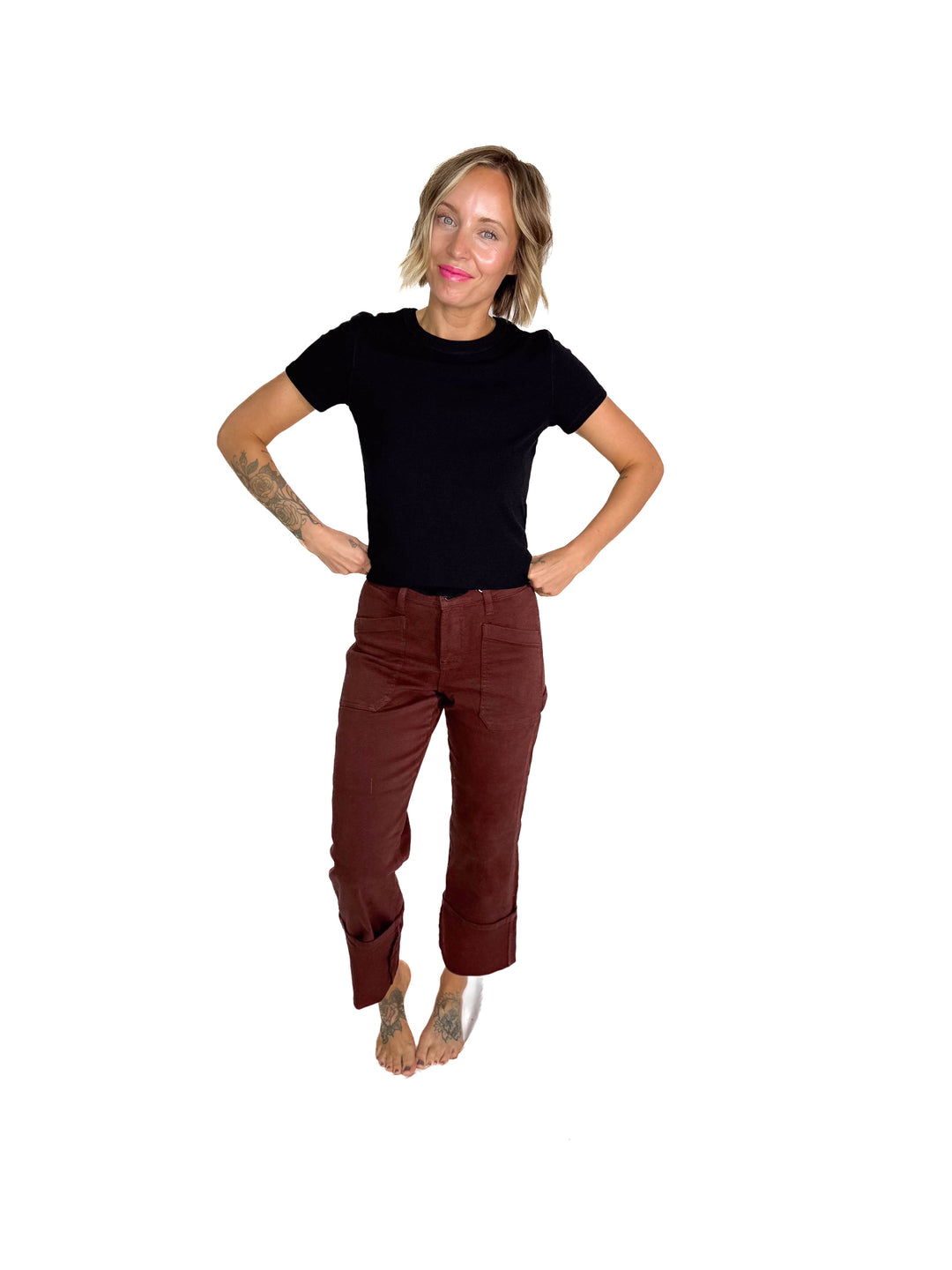 VERVET Clay High Rise Straight Leg Cargo Jean- RED BRICK