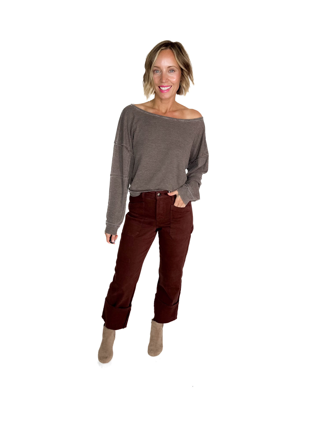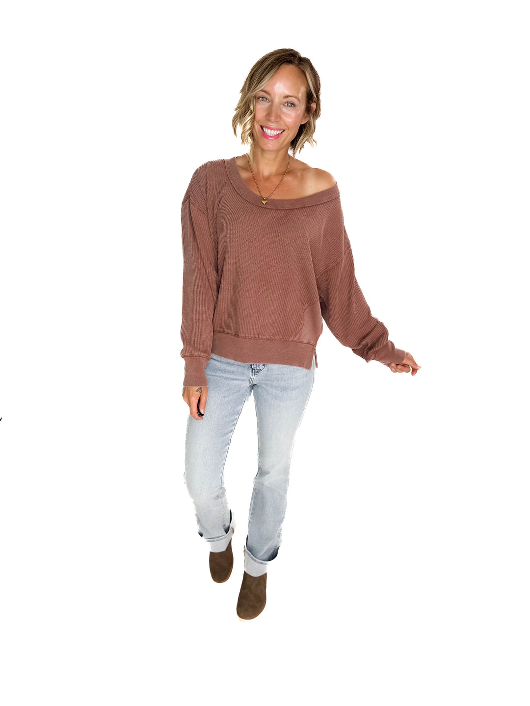 Devon Waffle Long Sleeve- CHESNUT-FINAL SALE