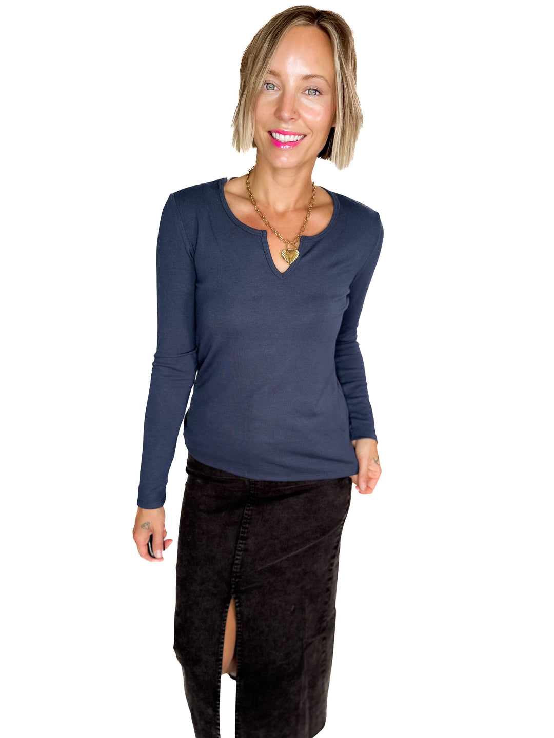 Tess Thermal Knit Long Sleeve- WASHED DENIM-FINAL SALE *L*