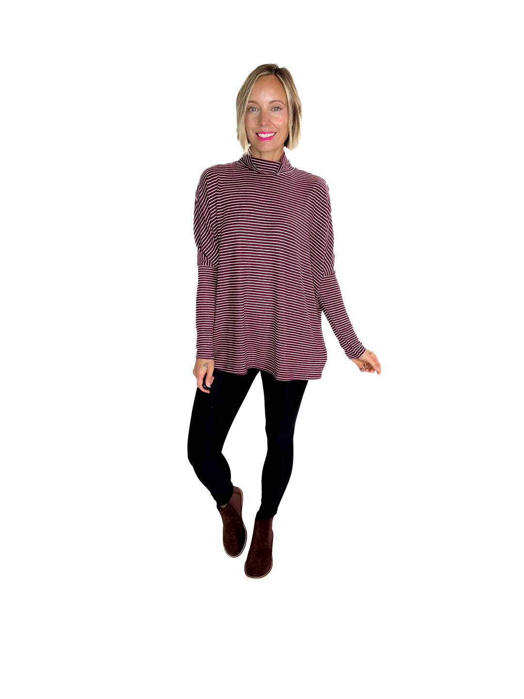 Mira Mock Neck Top- DARK CHERRY/ CREAM