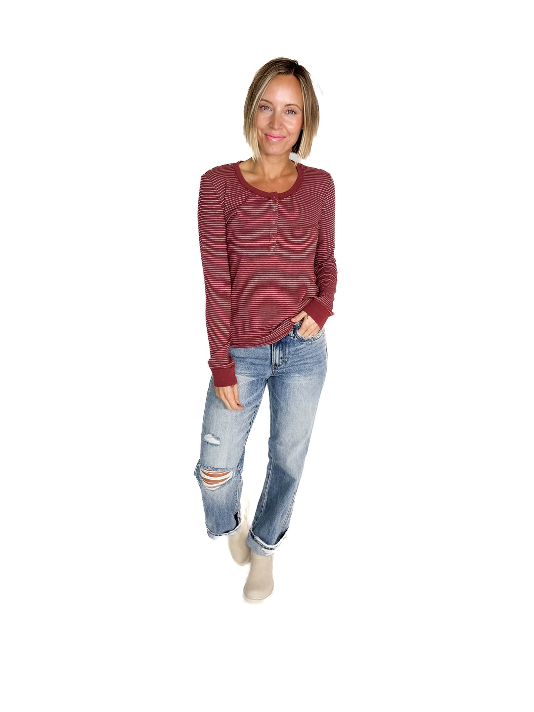 Maya Thermal Henley Top- BURGUNDY
