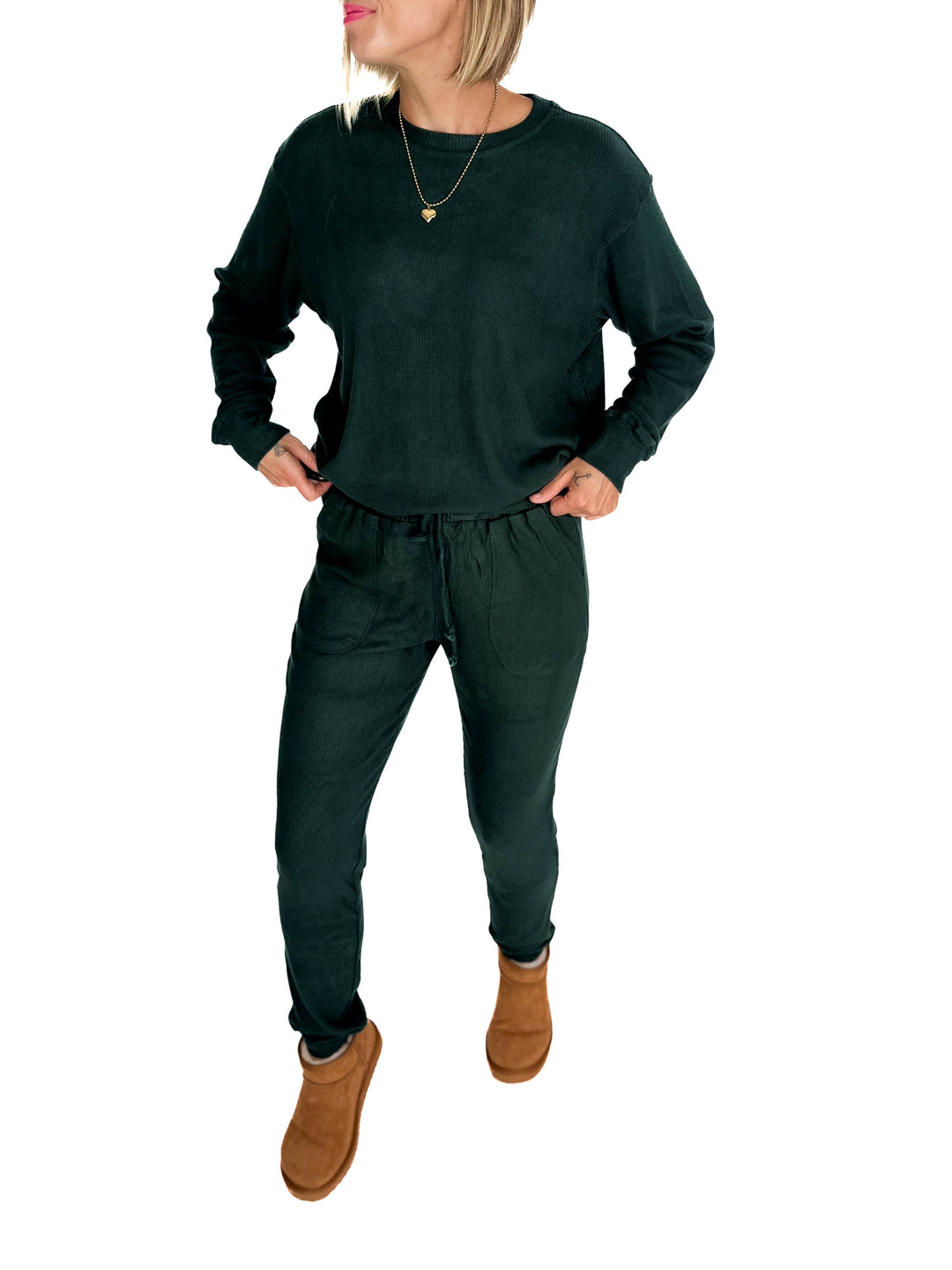 Layla Waffle Lounge Pant- HUNTER-FINAL SALE