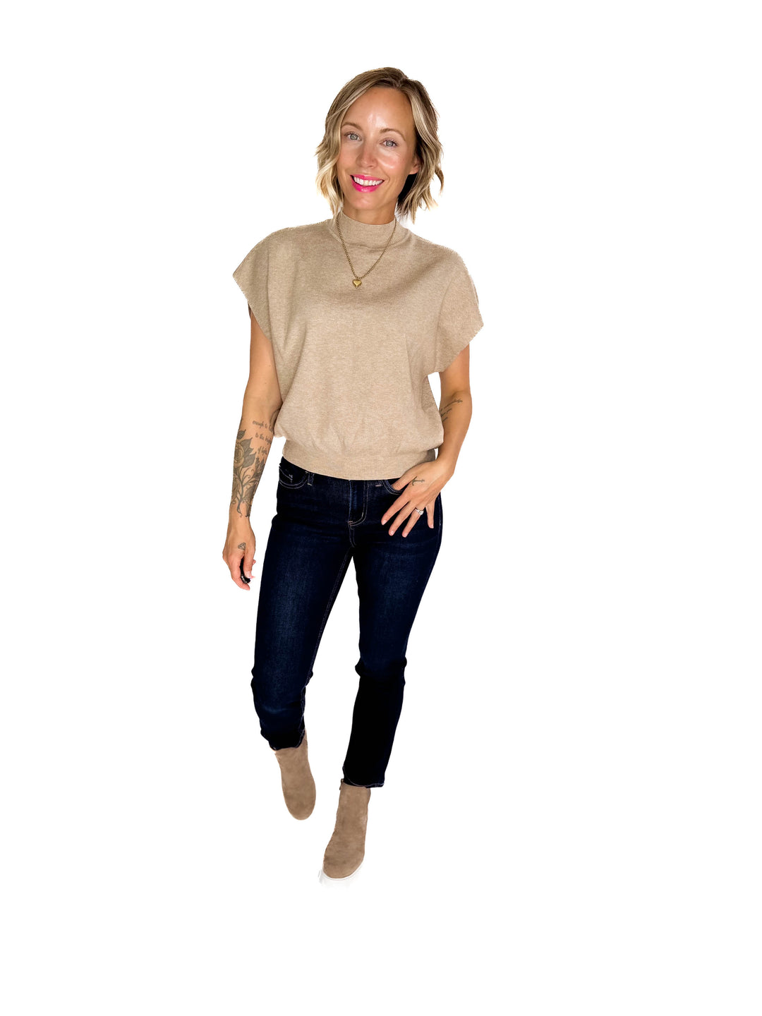 Scarlett Mock Neck Sweater Top- OATMEAL-FINAL SALE