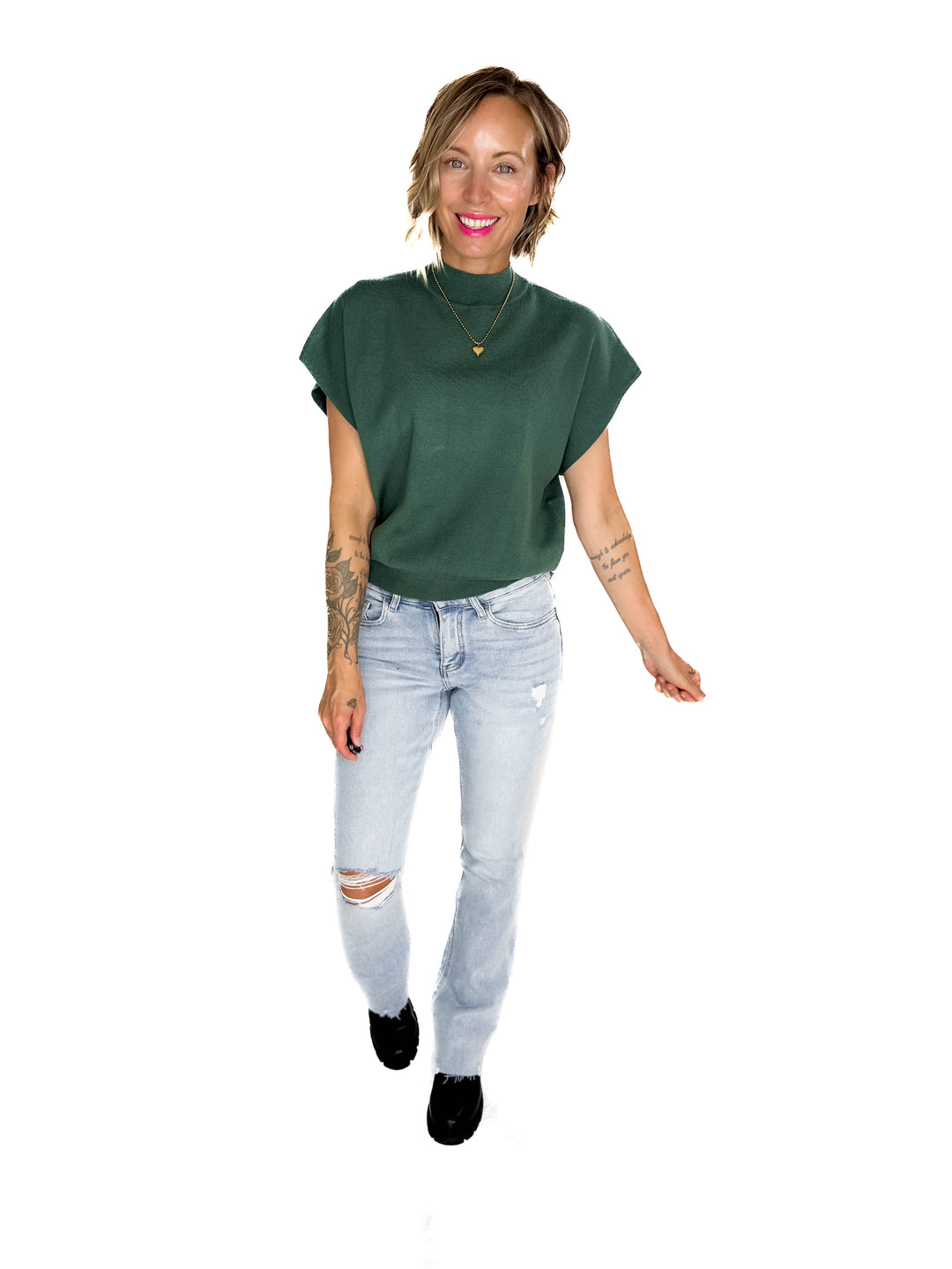 Scarlett Mock Neck Sweater Top- HUNTER GREEN-FINAL SALE