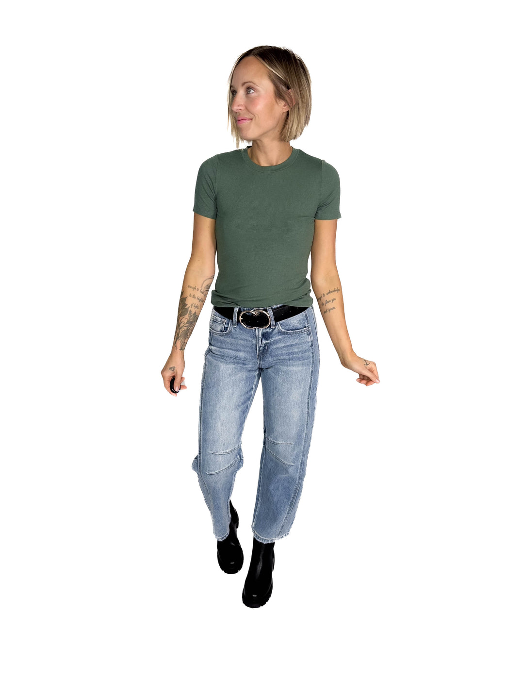 Joey Washed Cotton Boyfriend Tee- SOFT OLIVE