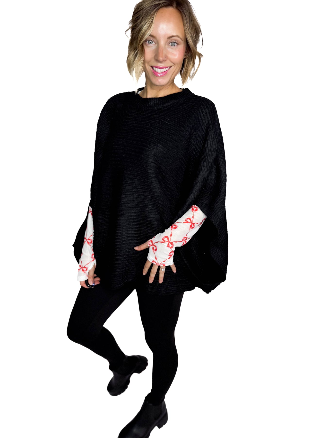 • Chic poncho look that pairs beautifully with denim, leggings, or dresses