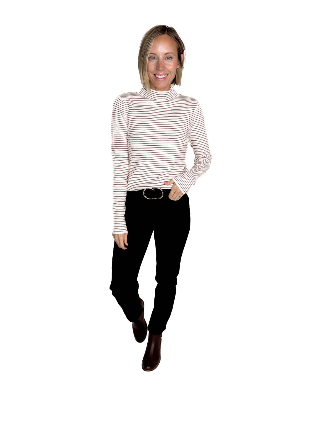 Malena Pinstripes Mock Neck Pullover Sweater- IVORY/COPPER-FINAL SALE
