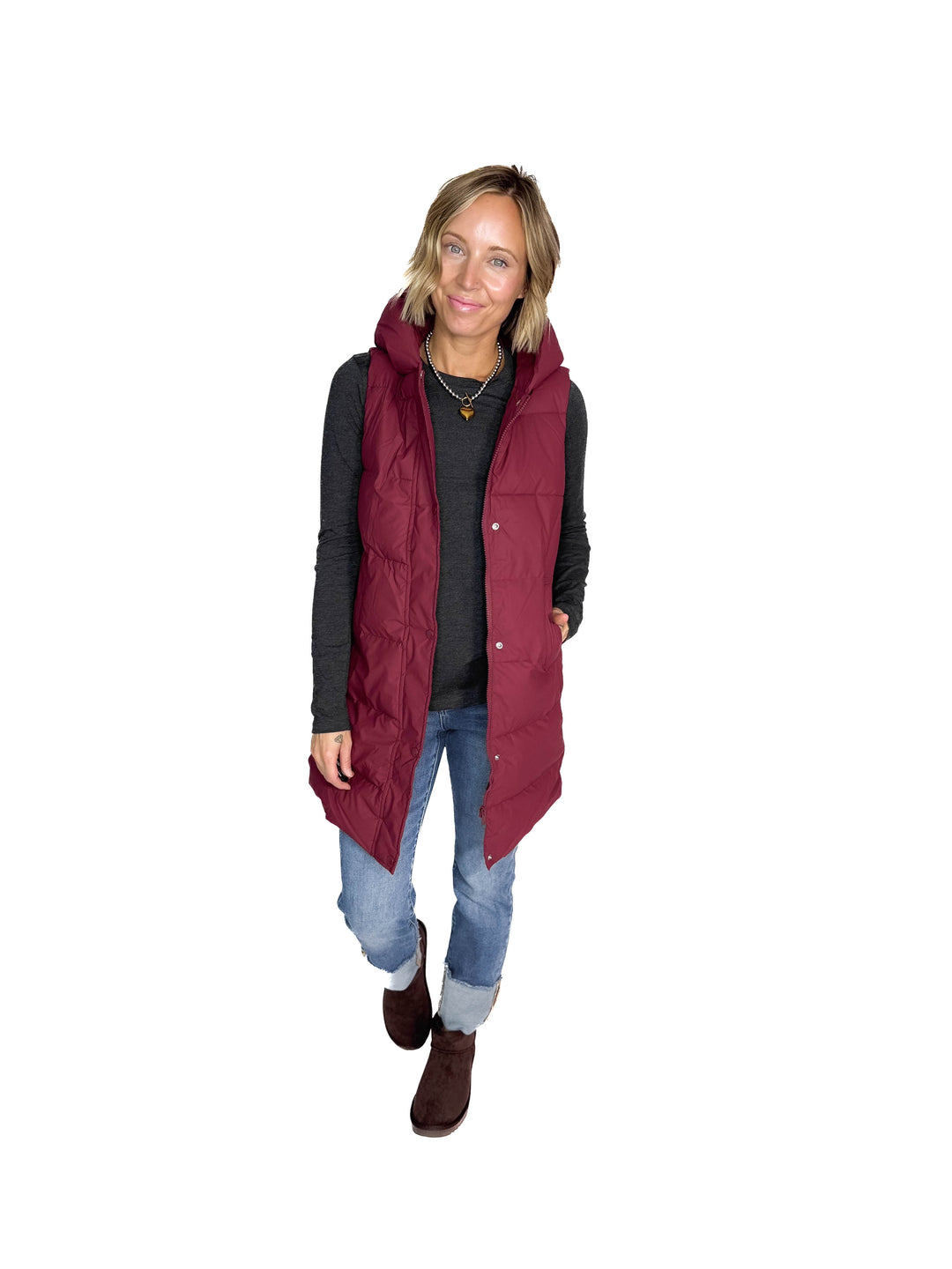 Sierra Mist Coated Longline Vest- BURGUNDY-FINAL SALE